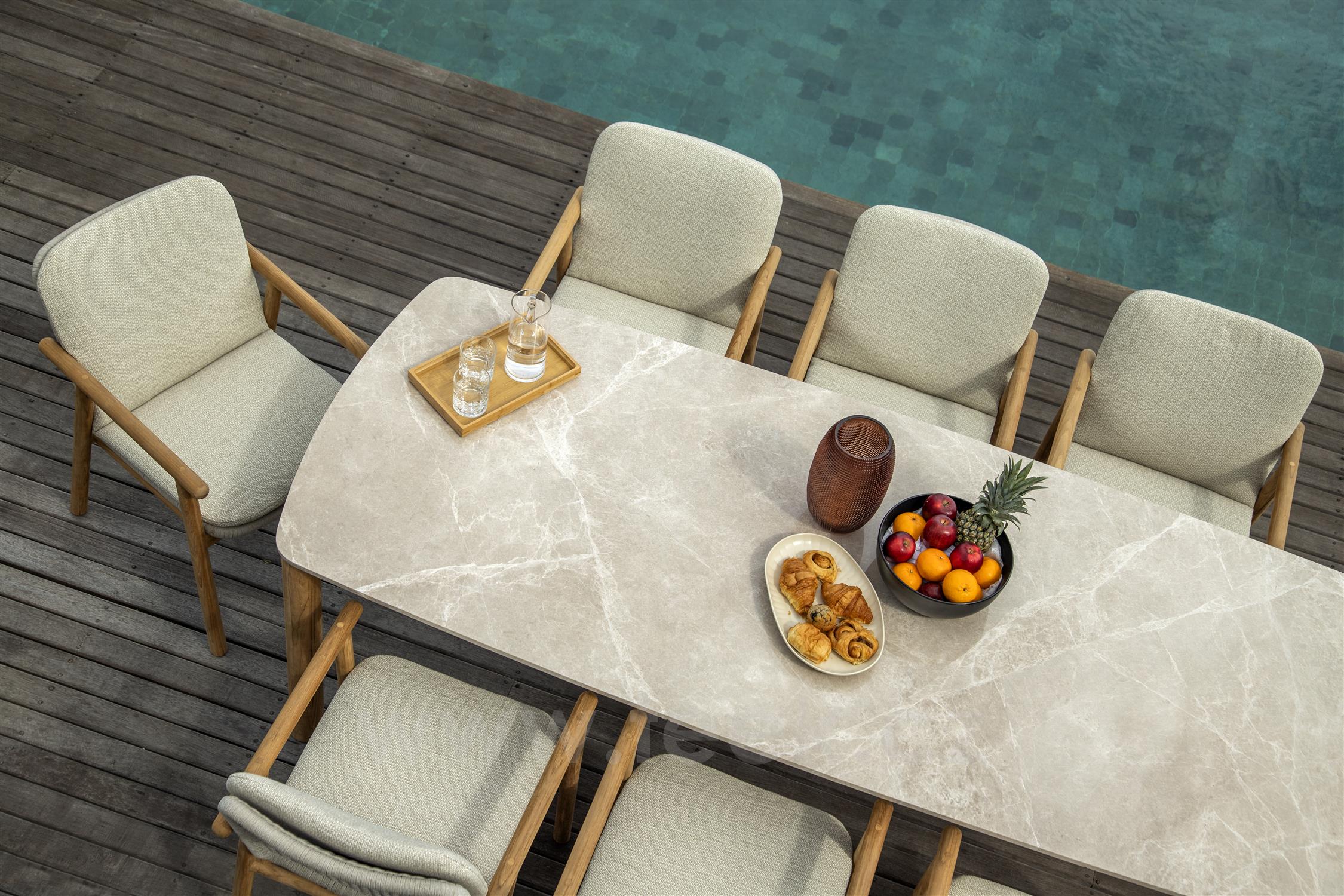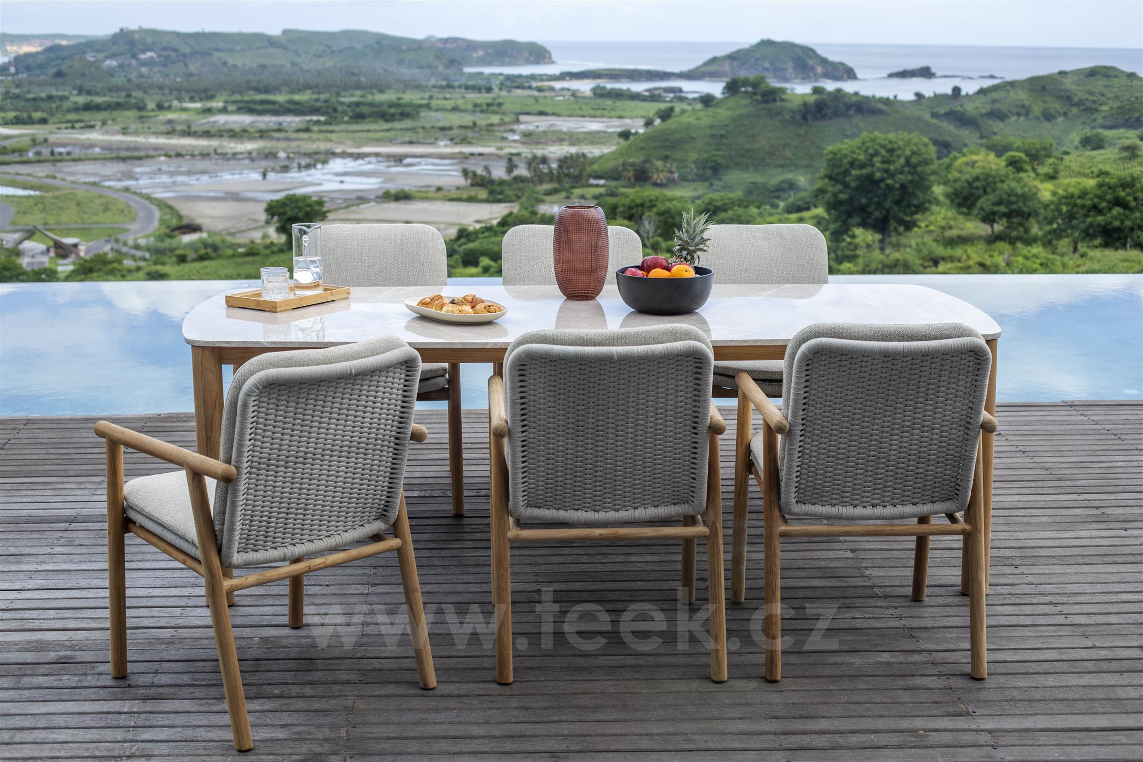 Jídelní stůl Benoa, Jati Kebon, obdélníkový 240x100 cm, rám teak, deska keramika 12mm dekor Chianca
