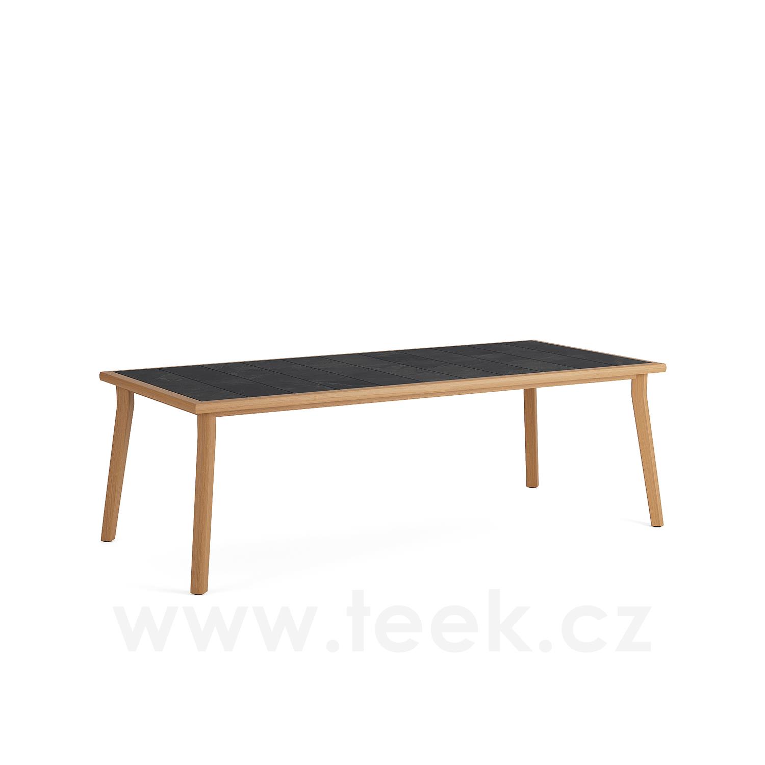 Jedálenský stôl Lynn Teak, Jati Kebon, obdĺžnikový 234x105x75 cm, teakový rám, dekor keramickej dosky Slate Black