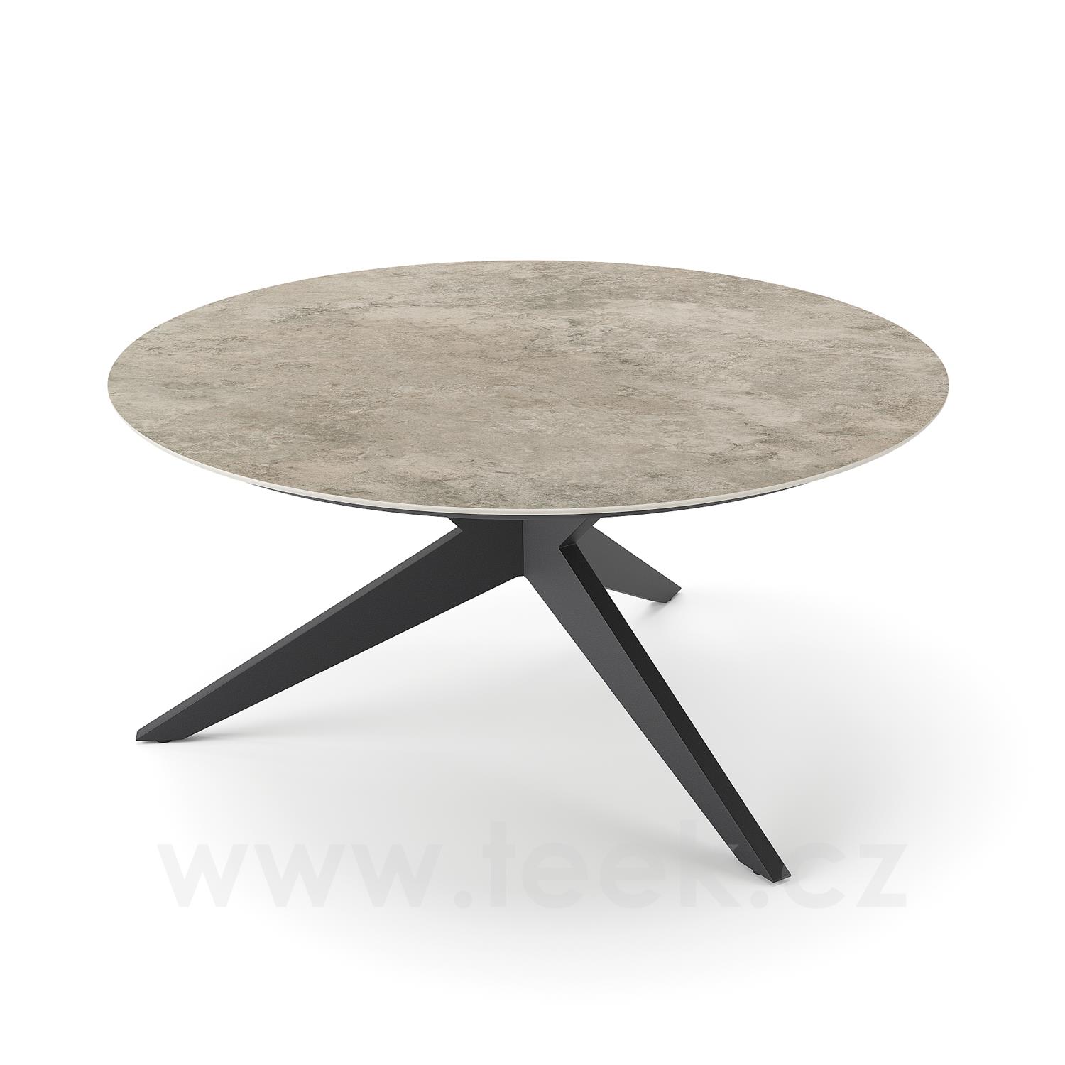 Jídelní stůl Yate, Jati Kebon, kulatý 150x72,6 cm, rám hliník barva charcoal mat, deska keramika 12mm dekor Paladium Grey