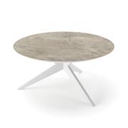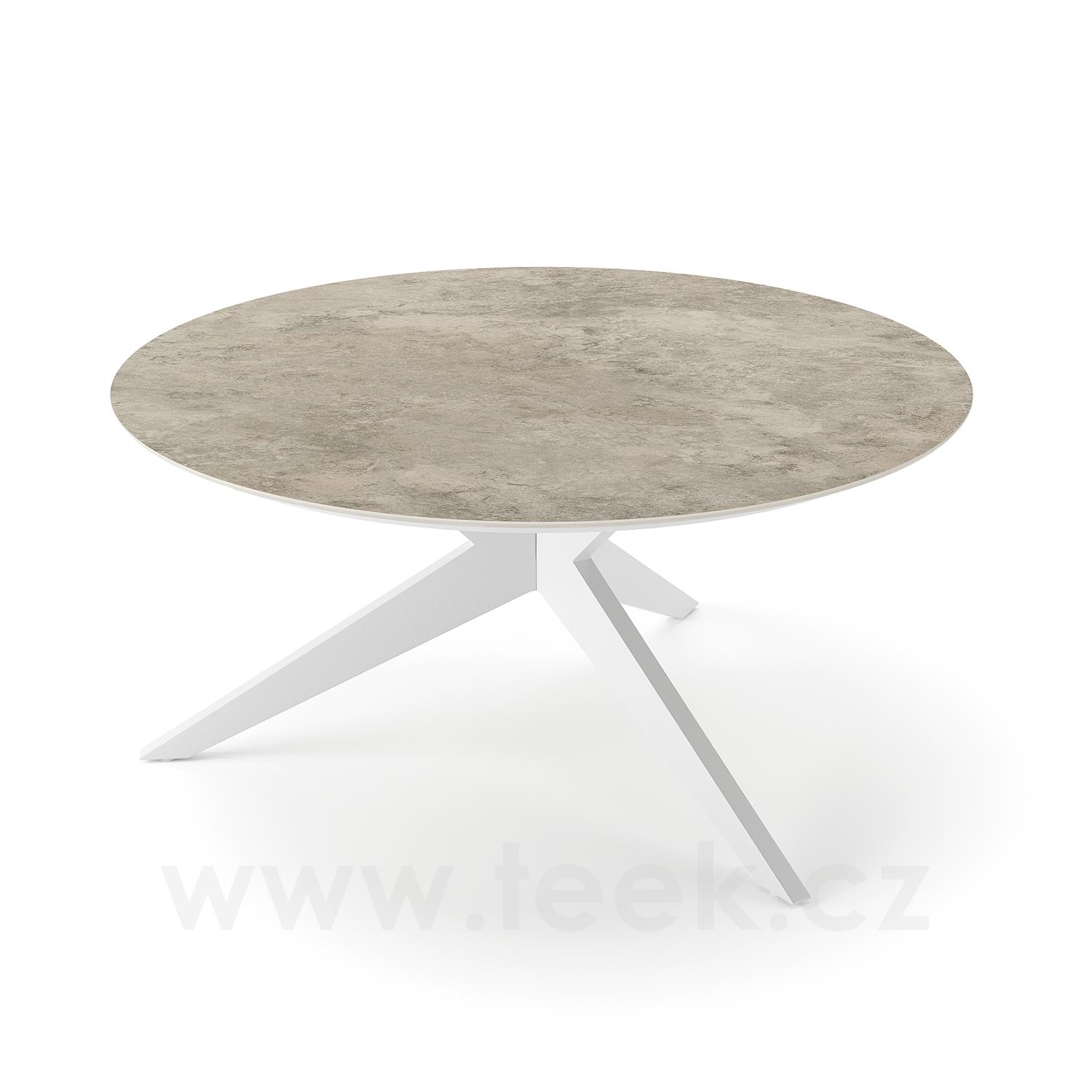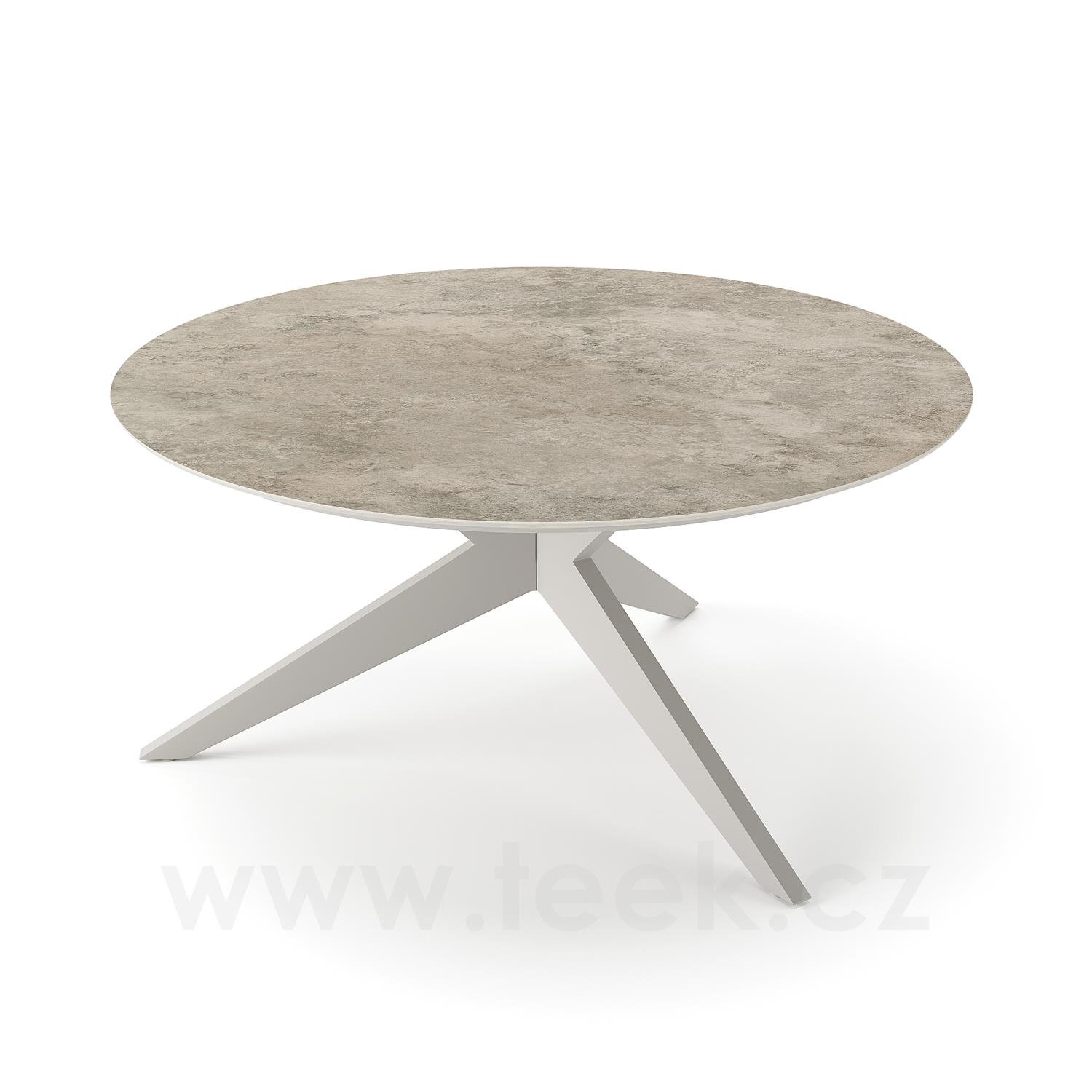 Jídelní stůl Yate, Jati Kebon, kulatý 150x72,6 cm, rám hliník barva white mat, deska keramika 12mm dekor Paladium Grey