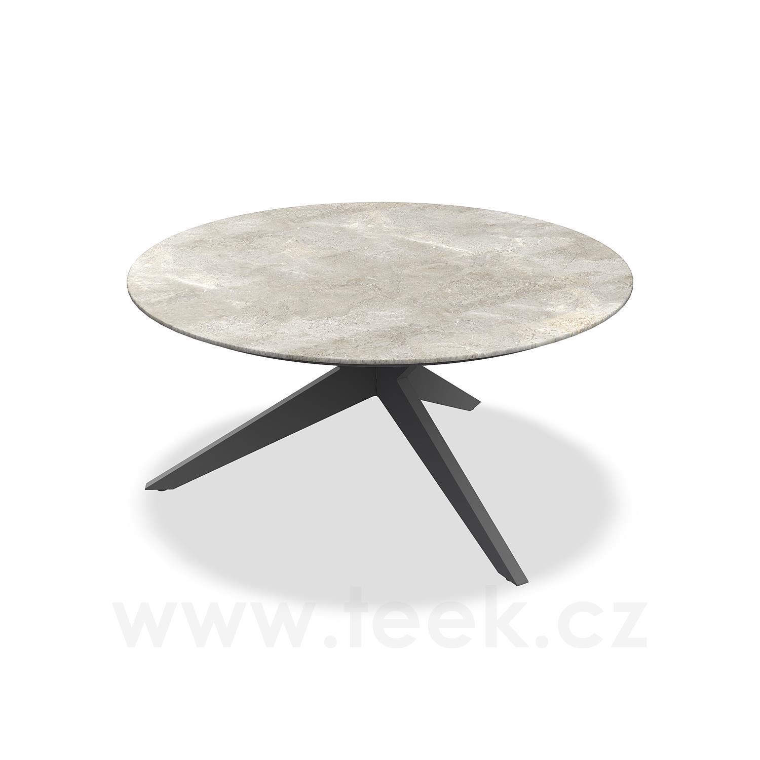 Jídelní stůl Yate, Jati Kebon, kulatý 150x72,6 cm, rám hliník barva sand mat, deska keramika 12mm dekor Chianca