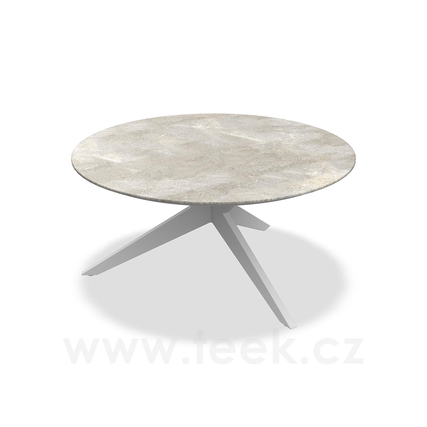 Jídelní stůl Yate, Jati Kebon, kulatý 150x72,6 cm, rám hliník barva white mat, deska keramika 12mm dekor Chianca