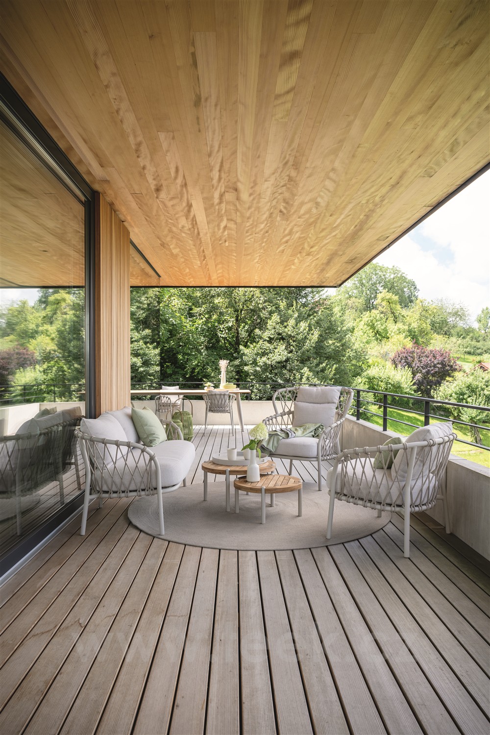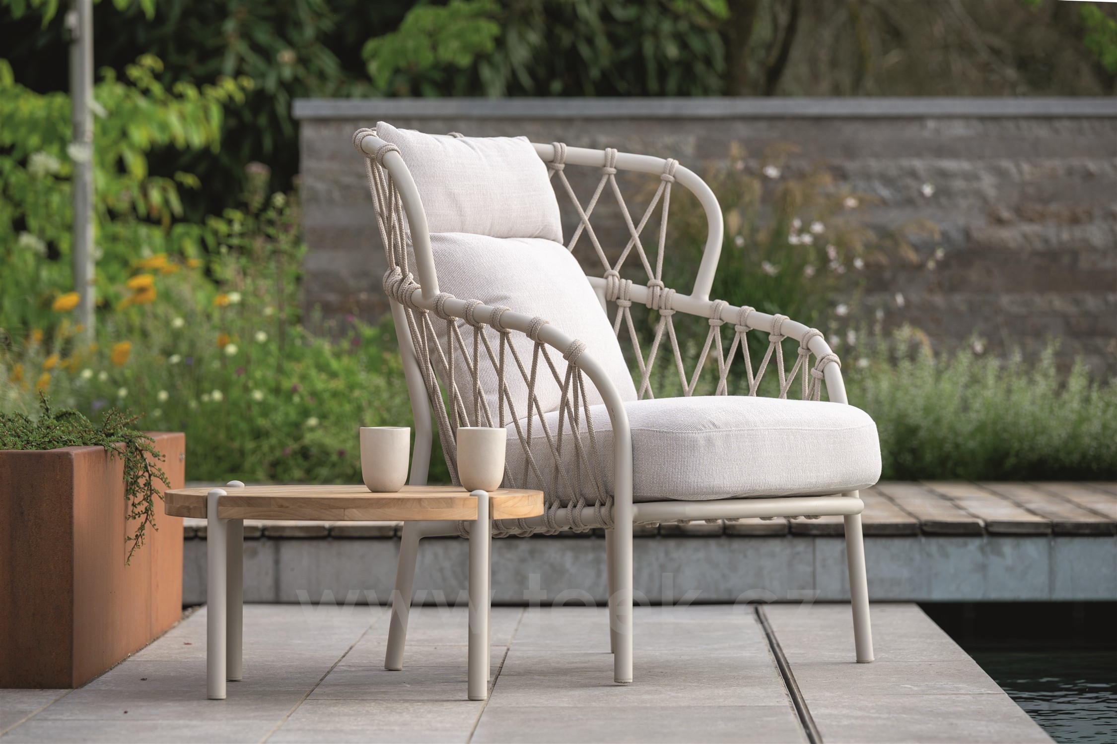 Vzdušný zahradní lounge nábytek s lankovým výpletem na terasu nebo na zahradu. Doporučujeme kombinovat s kolekcí Klea Dining .