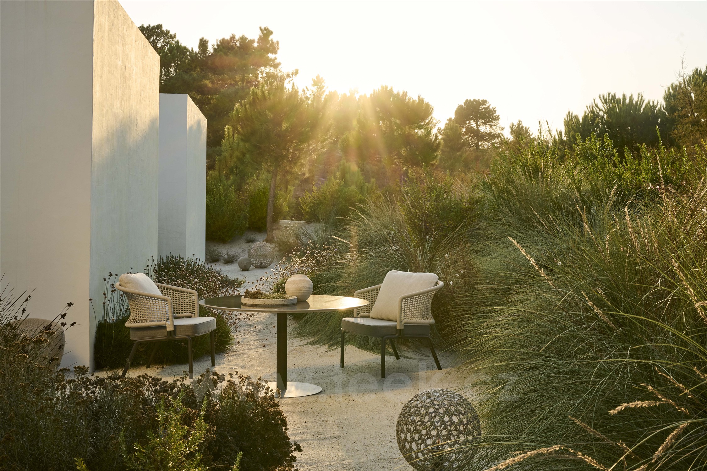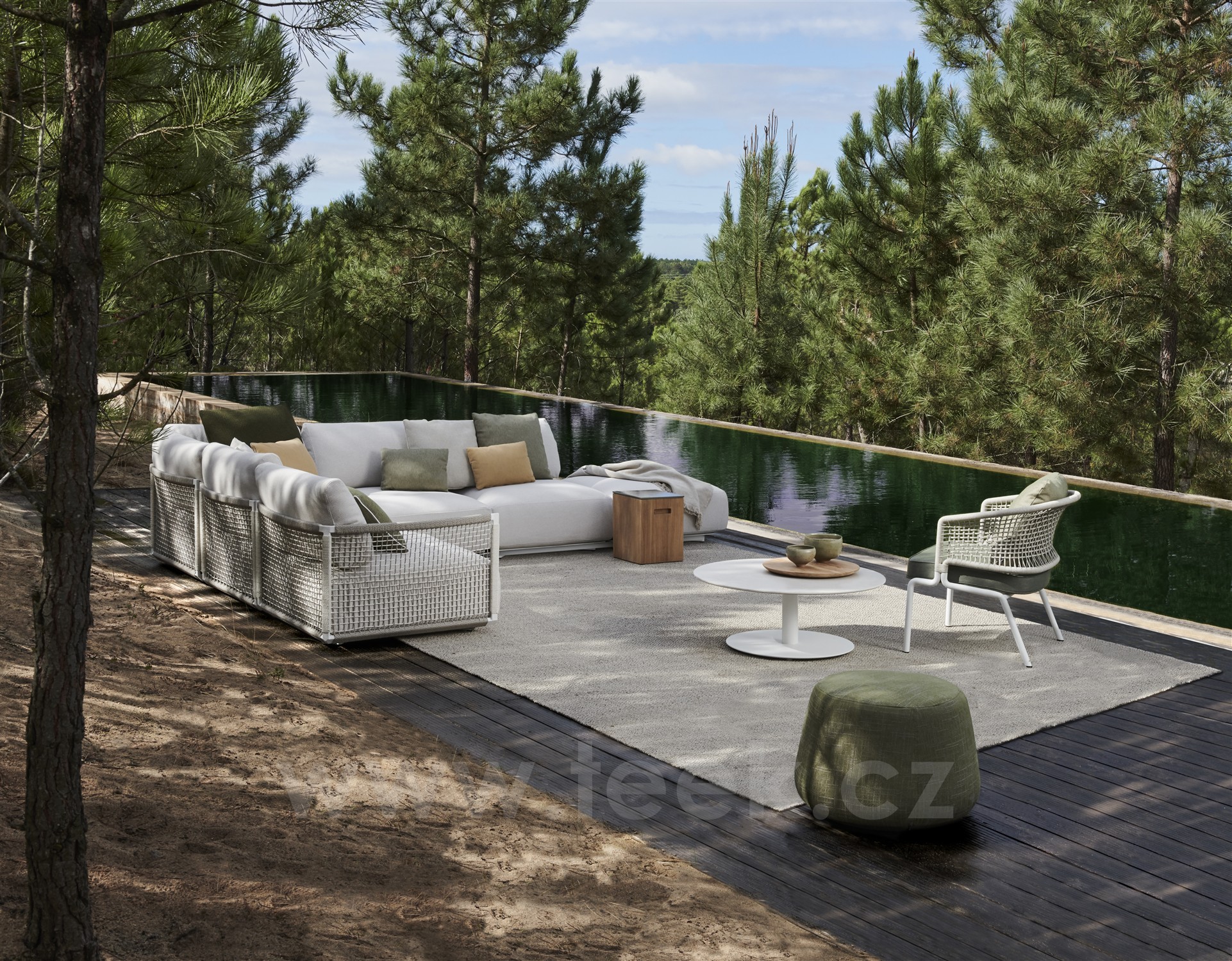 Stylové venkovní nízké křeslo lounge CTR značky Tribu s lankovým výpletem. Sedáky ve venkovní kvalitě.