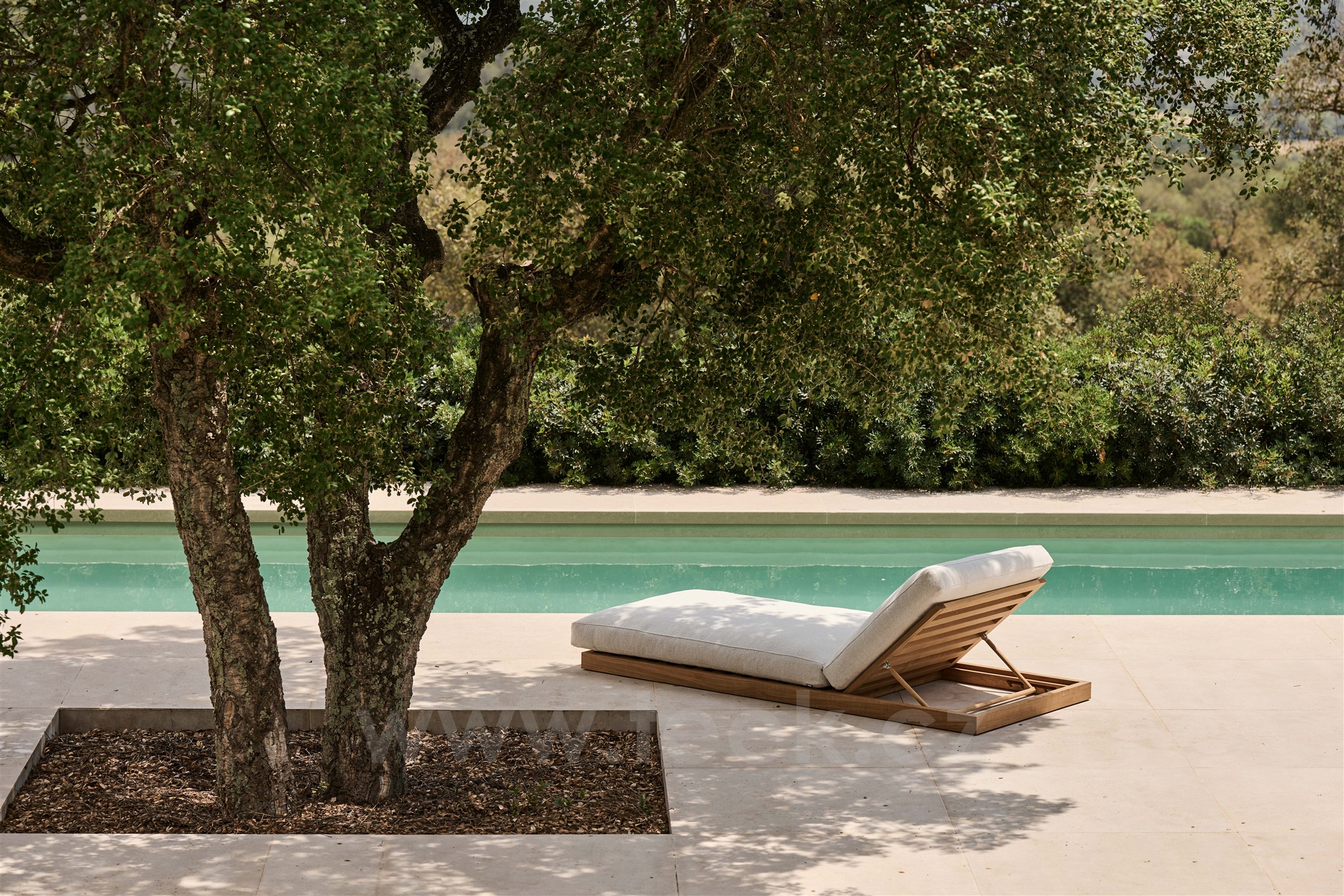 Polohovací teakové lehátko bez nožiček Pure, Tribù