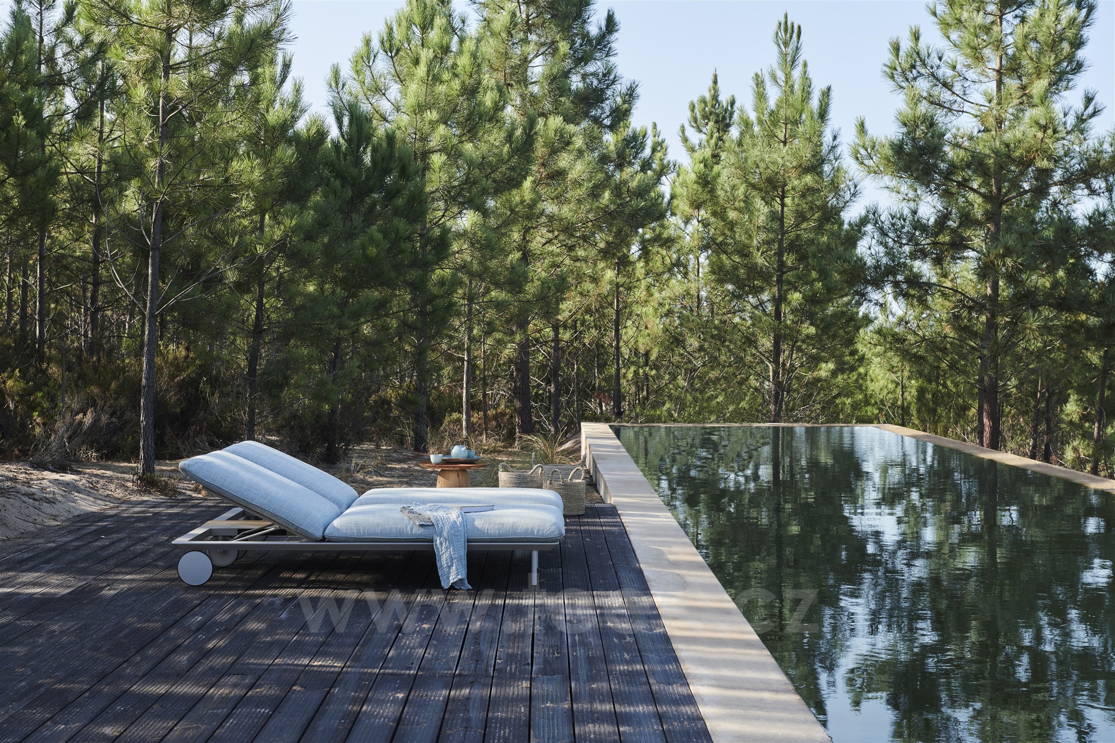Luxusní lehátka s kolečky Senja značky Tribu.