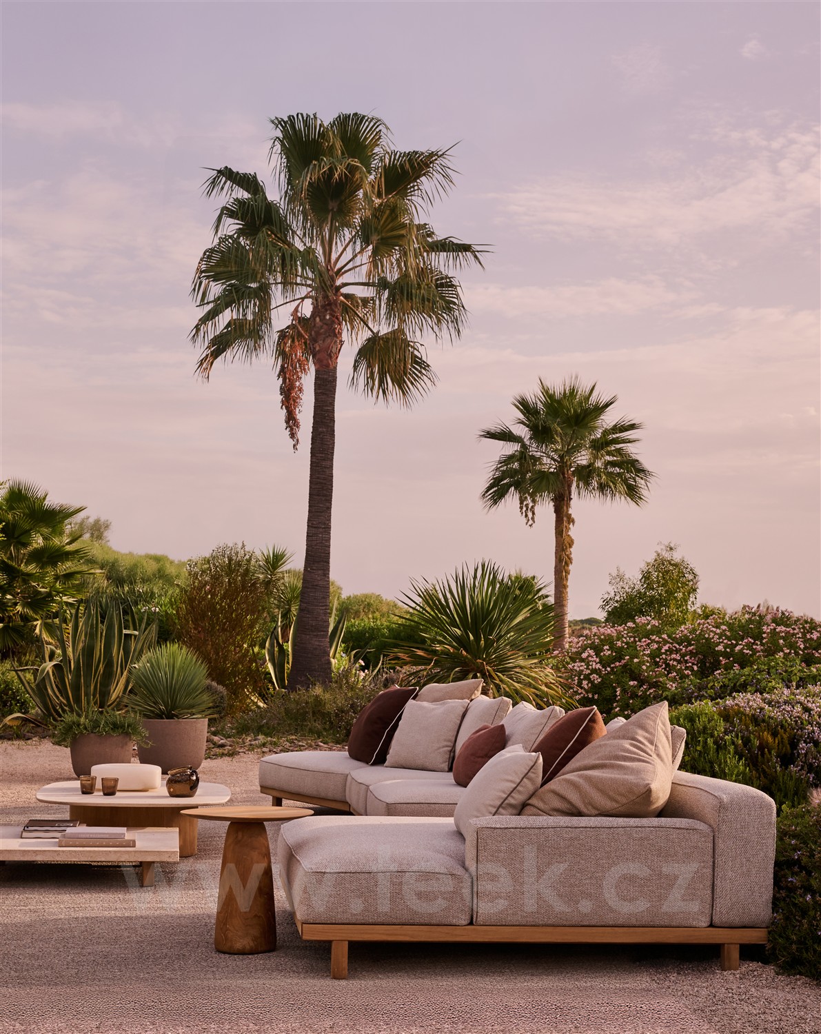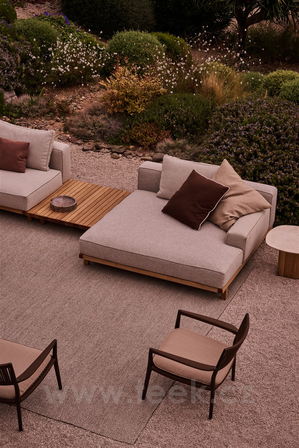 Luxusní modulární pohodlná sedací sestava z teaku.