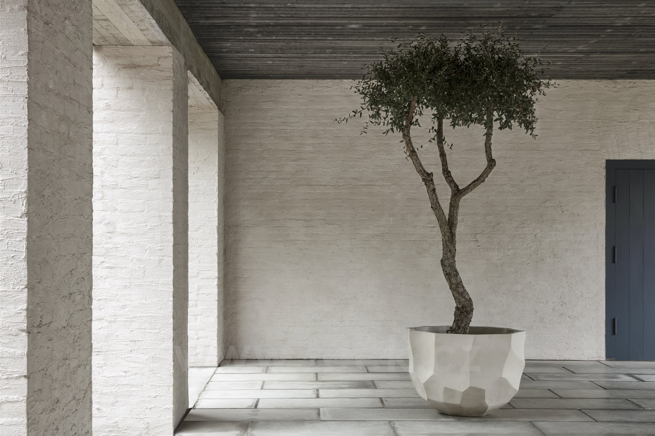 Luxusní venkovní květináč z pálené hlíny/keramiky vyrobený belgickou manufakturou Domani.