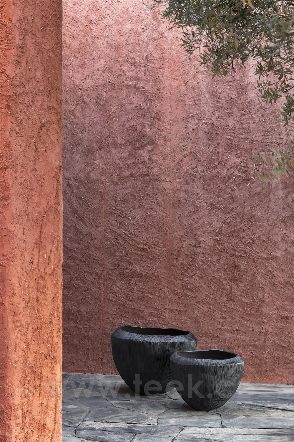 Luxusní venkovní květináč z pálené hlíny/keramiky vyrobený belgickou manufakturou Domani.