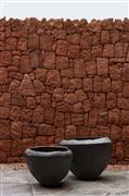 Luxury outdoor planter made of fired clay/ceramics, manufactured by Belgian workshop Domani.