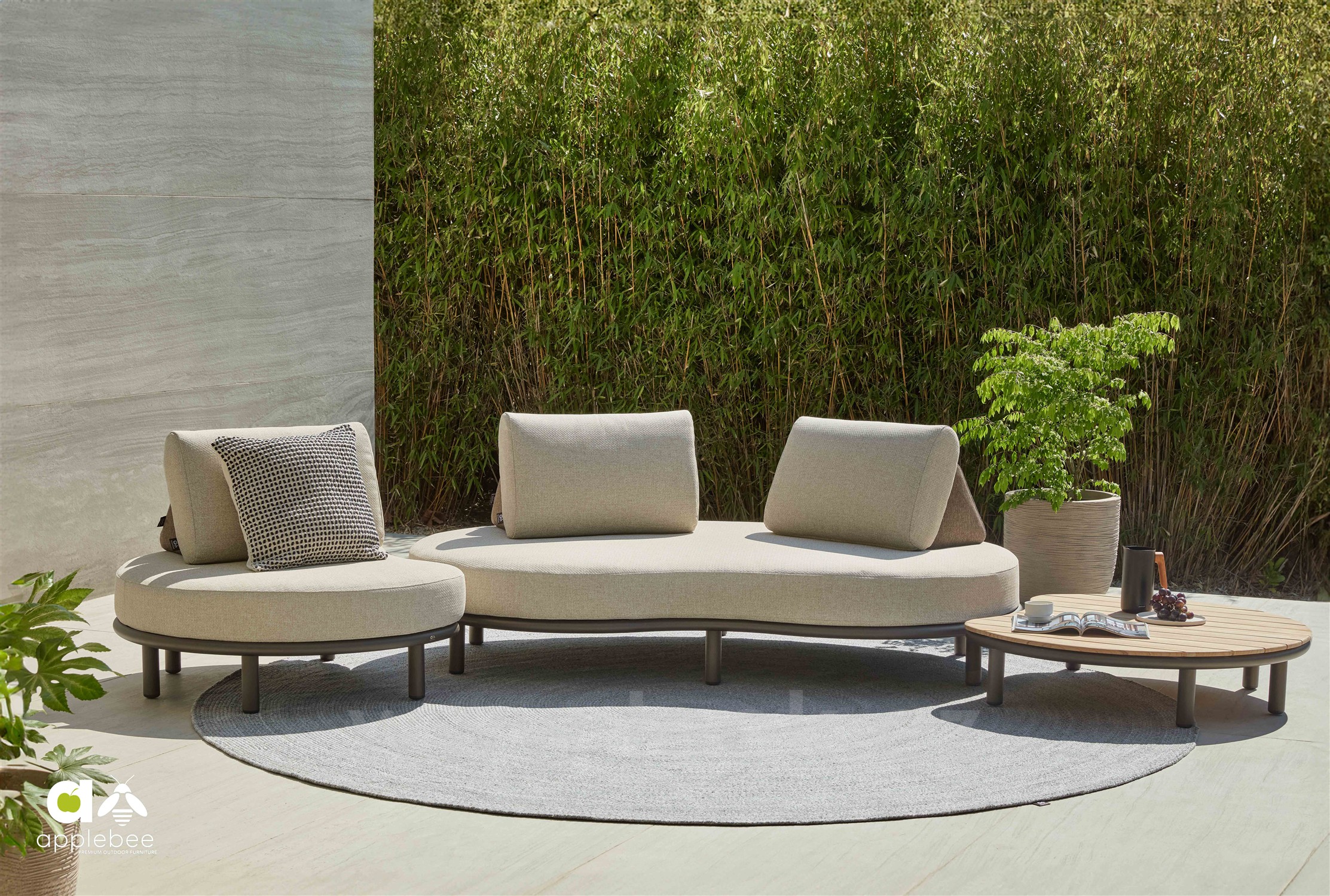 2-místný modul Moon Island, Apple Bee, oválný 196x110x40 cm, rám hliník Bronze, sedáky venkovní látka Cotton Flower