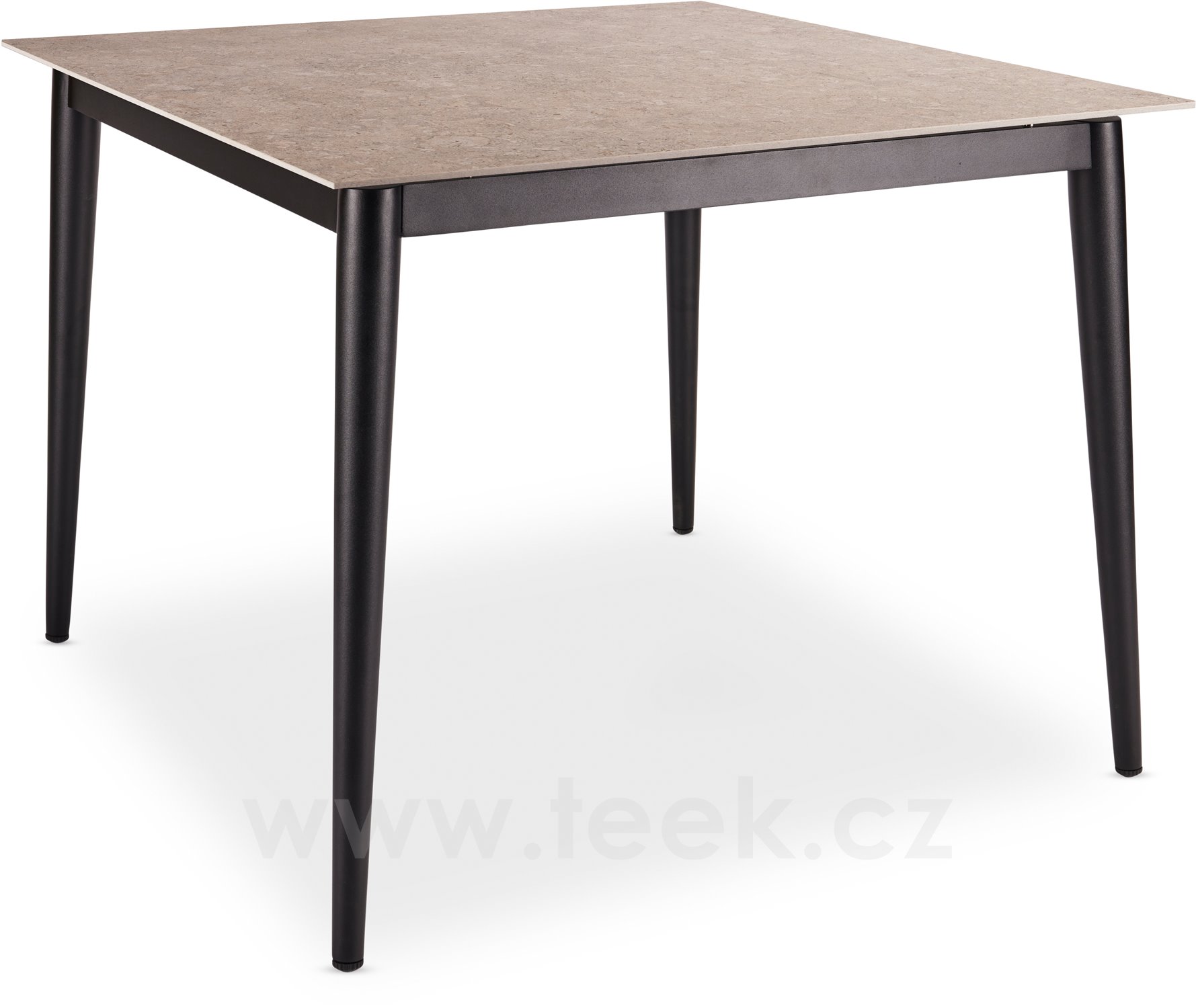 Jídelní stůl Ava, Stern, čtvercový 100x100x74 cm, rám lakovaný hliník černý (black matt), deska keramika dekor Stone beige