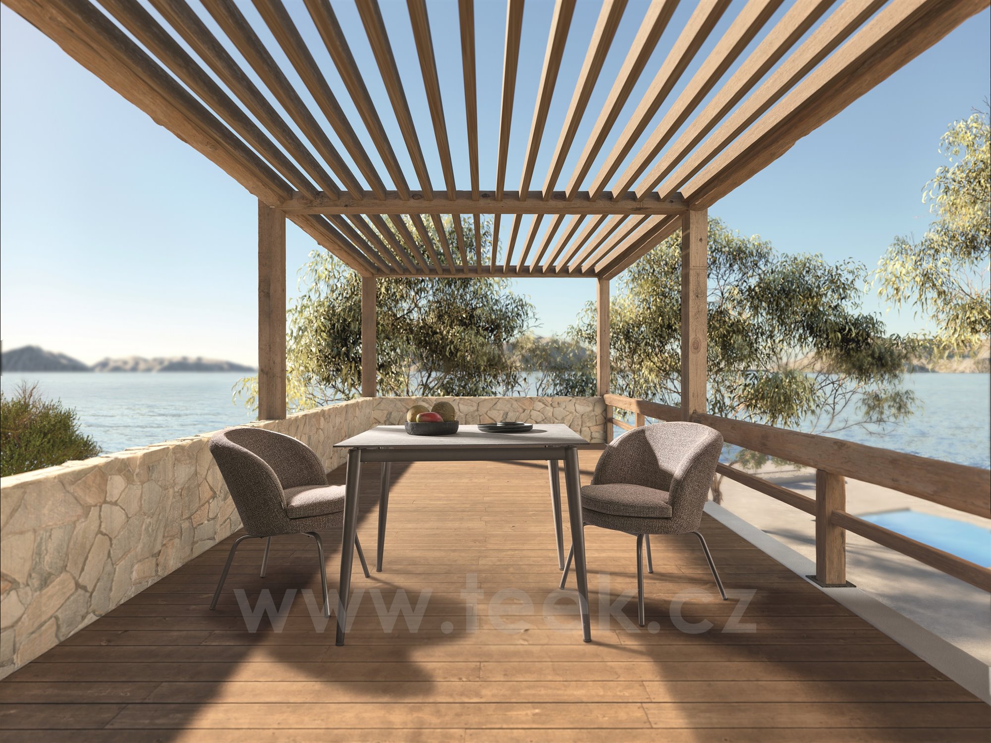 Jídelní stůl Ava, Stern, čtvercový 100x100x74 cm, rám lakovaný hliník sand matt, deska keramika dekor Stone grey