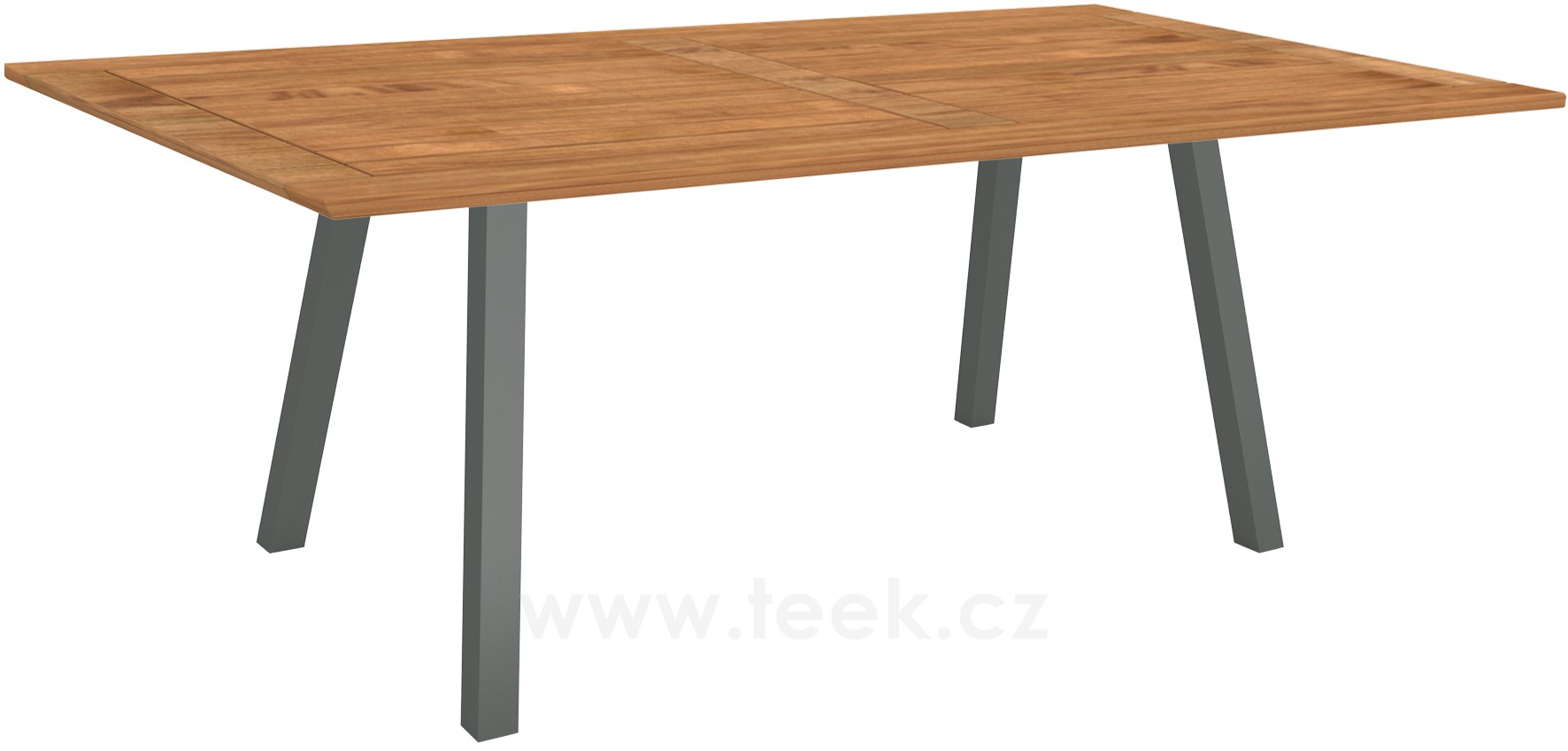 Jídelní stůl Interno, Stern, obdélníkový 180x100x75 cm, profil nohou čtvercový, rám lakovaný hliník šedý (graphite), deska teak