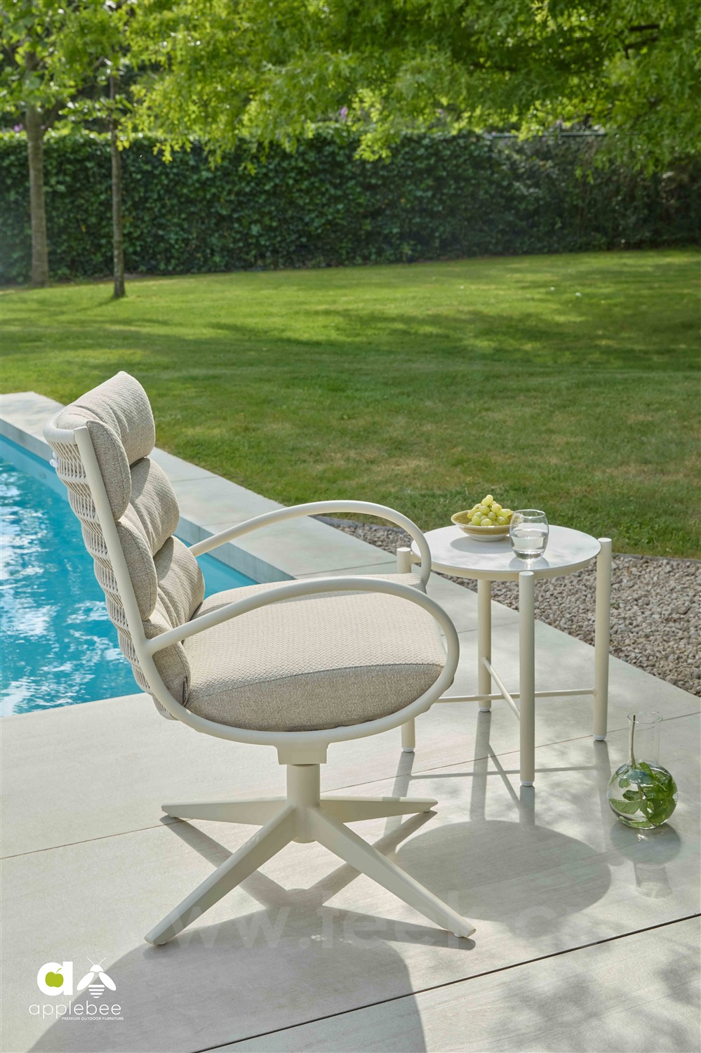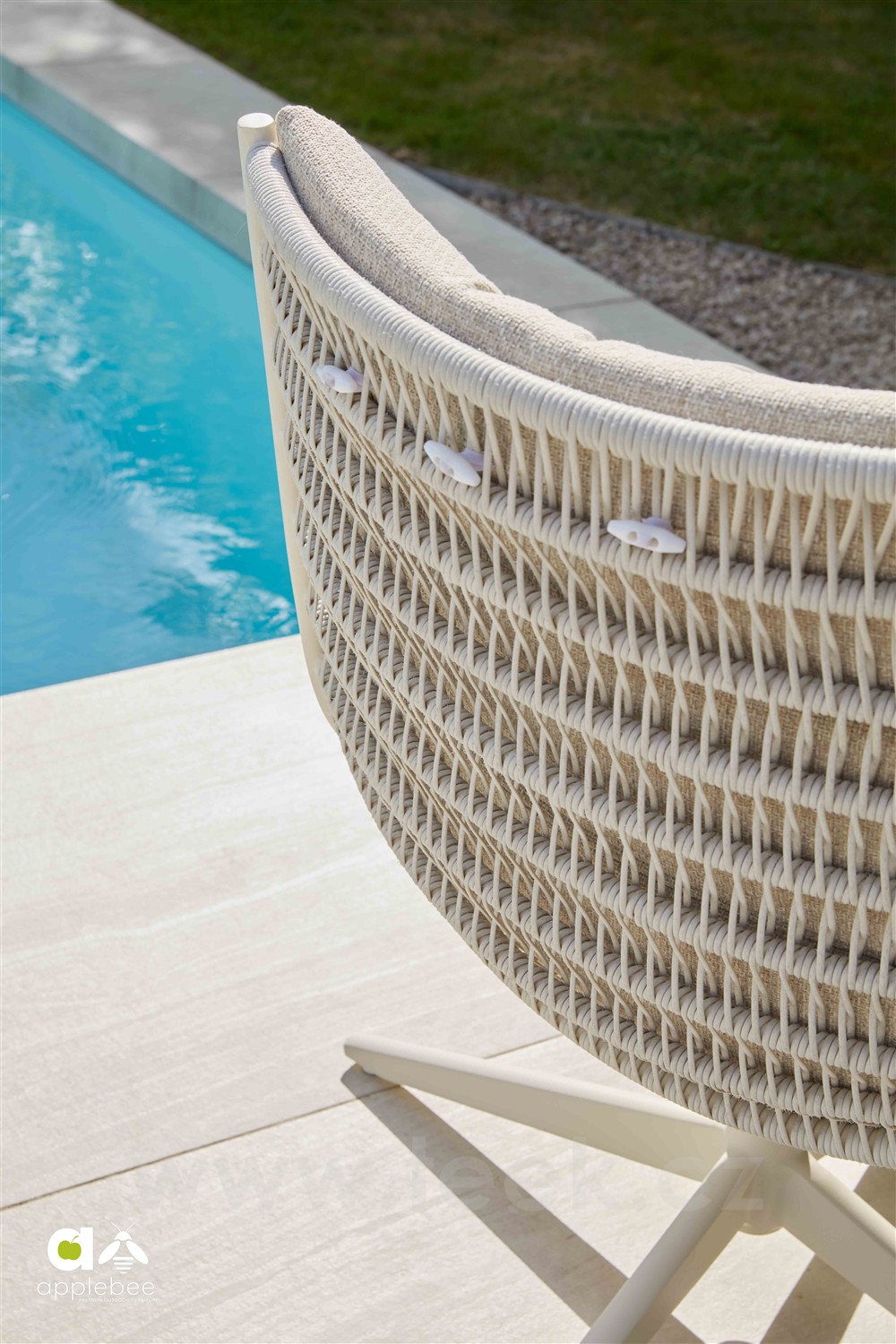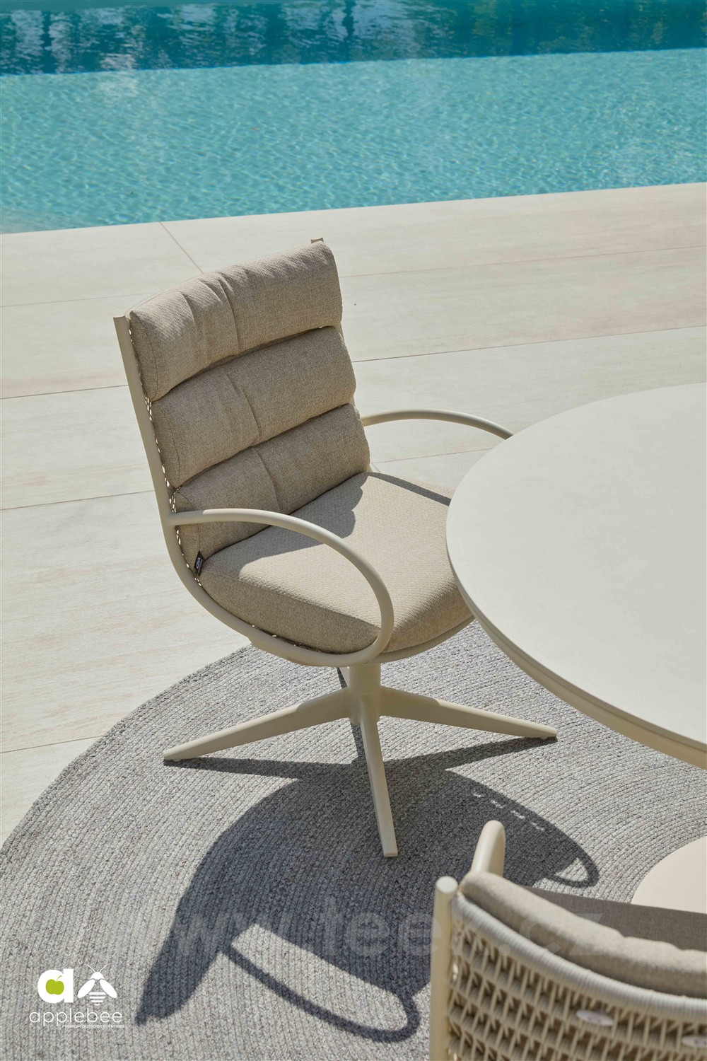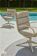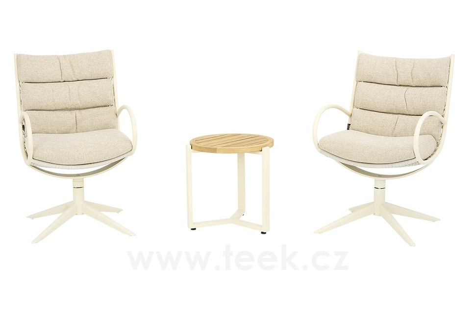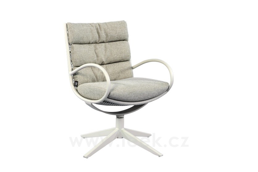 Křeslo otočné Camp Bay, Apple Bee, rám lakovaná ocel Oyster, výplet lanko Cream White, sedáky venkovní látka Cotton Flower