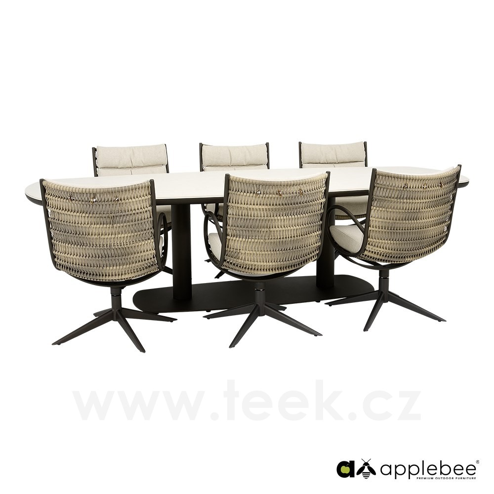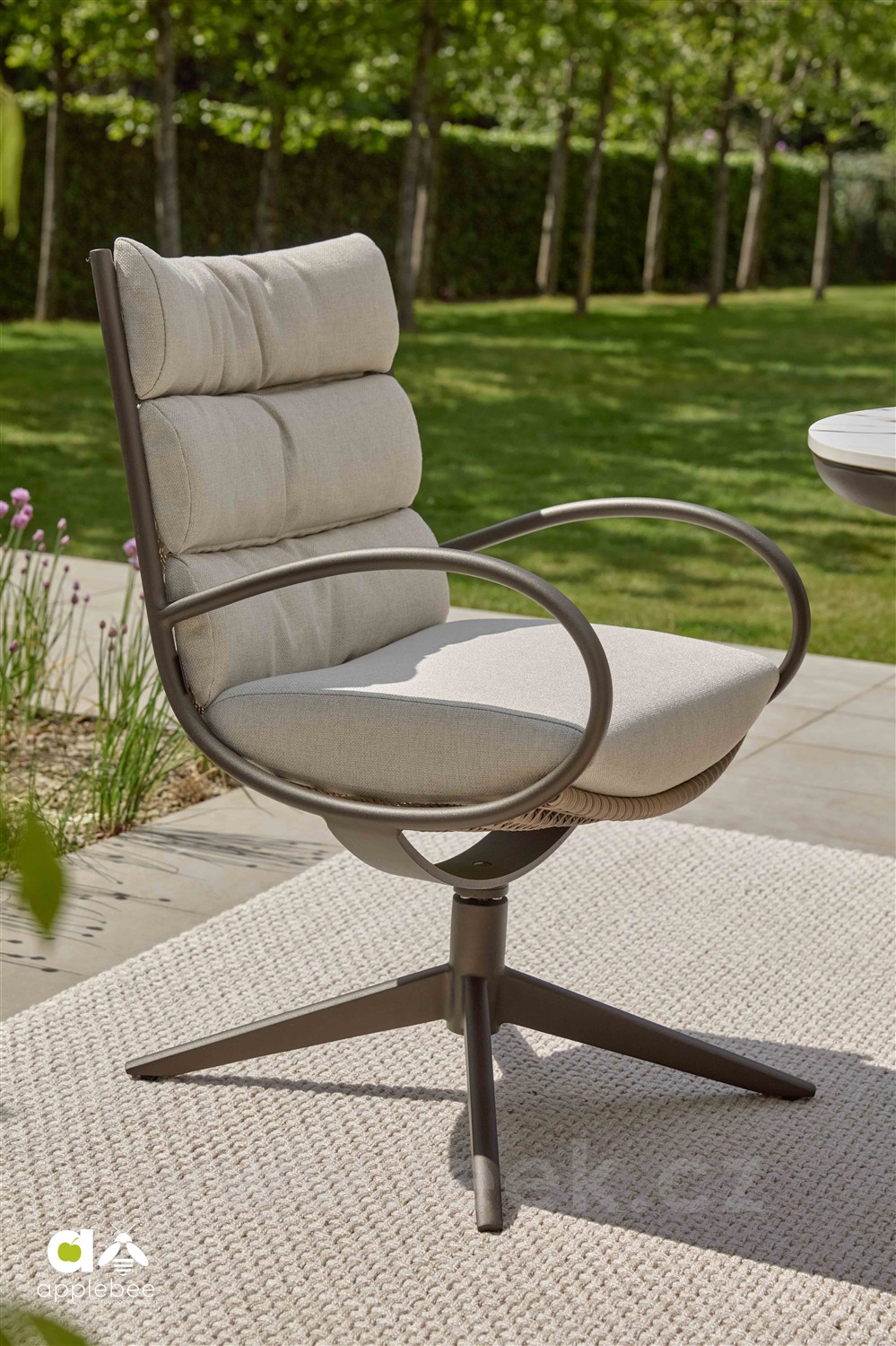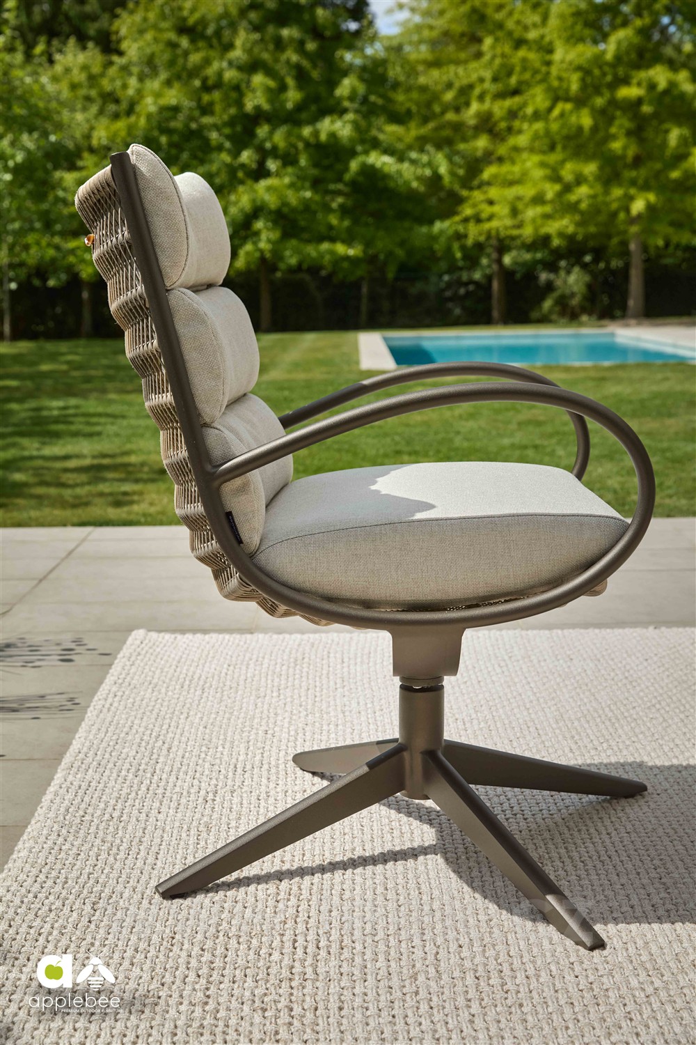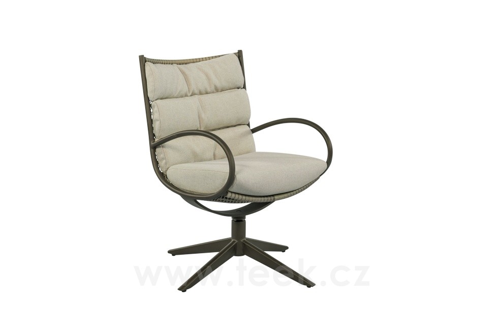 Křeslo otočné Camp Bay, Apple Bee, rám lakovaná ocel Bronze, výplet lanko Teak Grey, sedáky venkovní látka barva Natur-CN