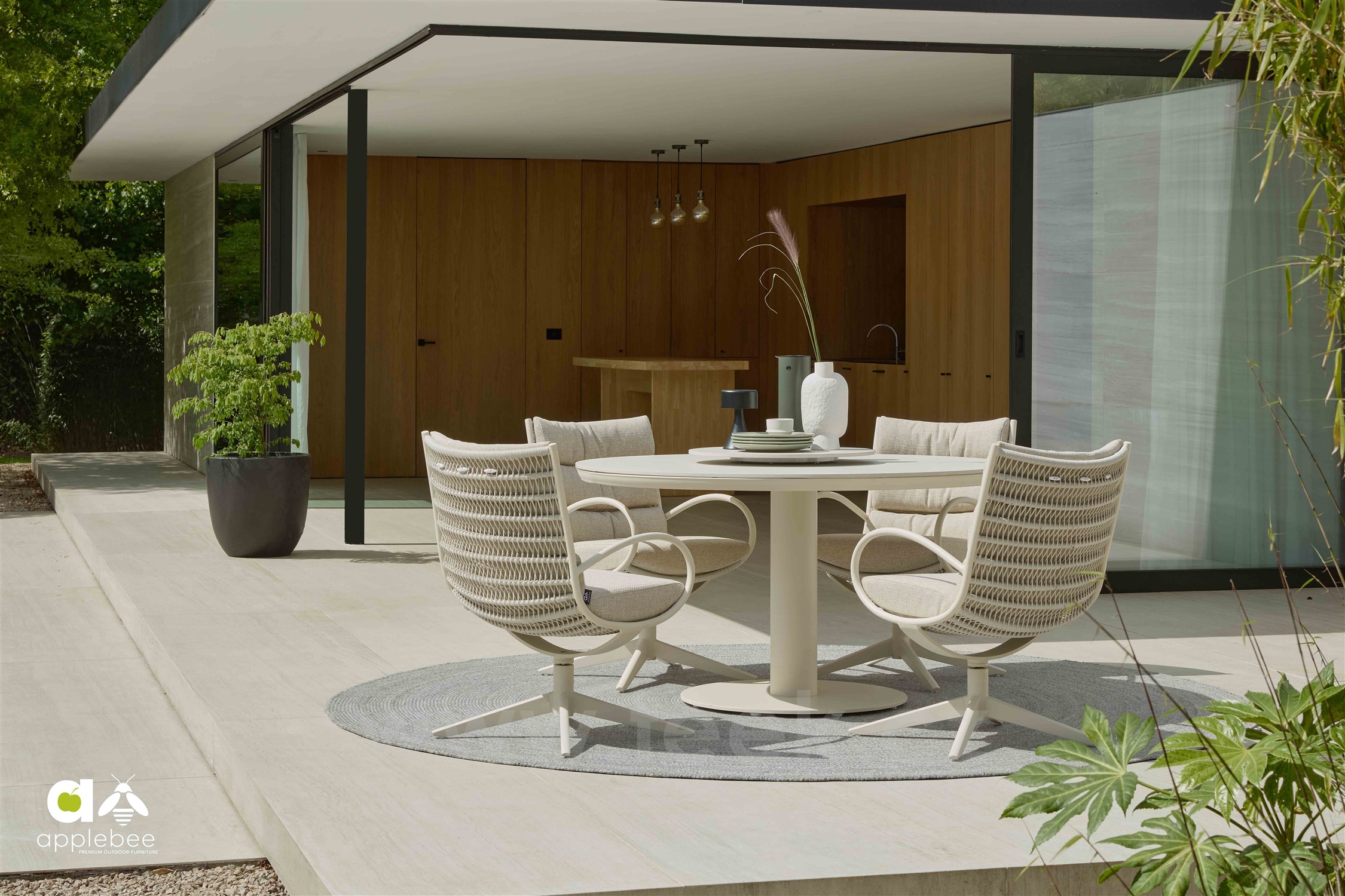 Jídelní křeslo otočné Camp Bay, Apple Bee, ocel, lankový výplet, venkovní látka