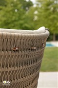 Venkovní jídelní křeslo s rámem z lakovavané ocel v barvě dle vzorníku, lankový výplet a sedáky z venkovní látky.