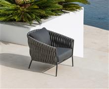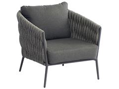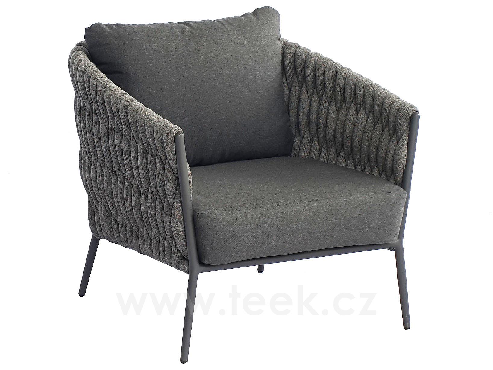 Nízké křeslo Fortuna Socks, Jati Kebon, 77x89x83 cm, rám hliník barva charcoal mat, výplet barva charcoal 14 mm, sedáky venkovní látka Sunproof Jalousie Dark Grey