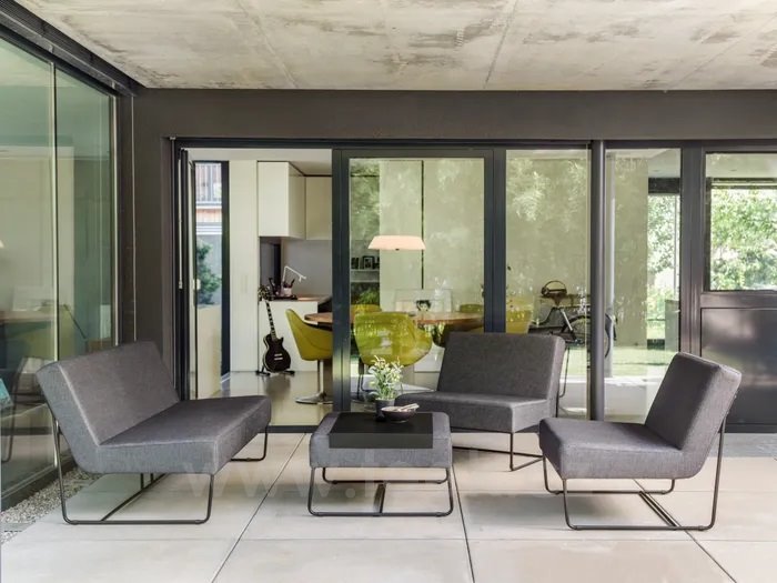 Křeslo má rám z nerezové oceli, na kterém je osazené polstrování s kvalitní venkovní látkou.