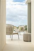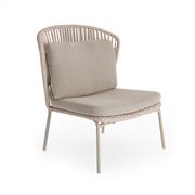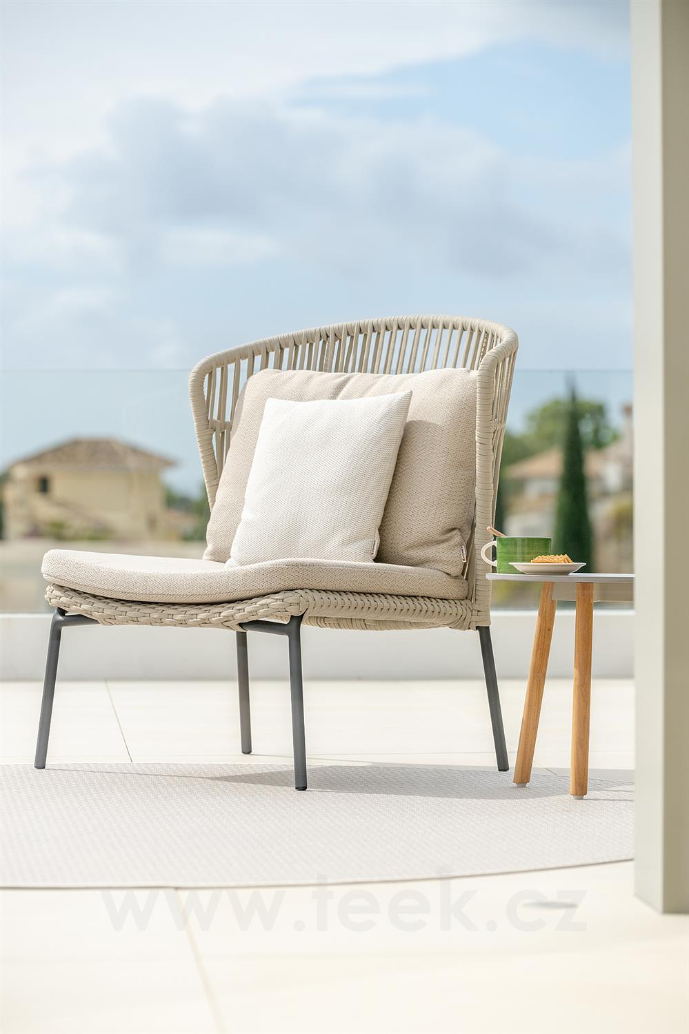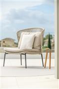 Nízké křeslo s vysokou zádovou opěrkou Lima, Jati Kebon, 91x87x101 cm, rám hliník barva sand mat, výplet lanko 14 mm barva linnen, bez polstrů