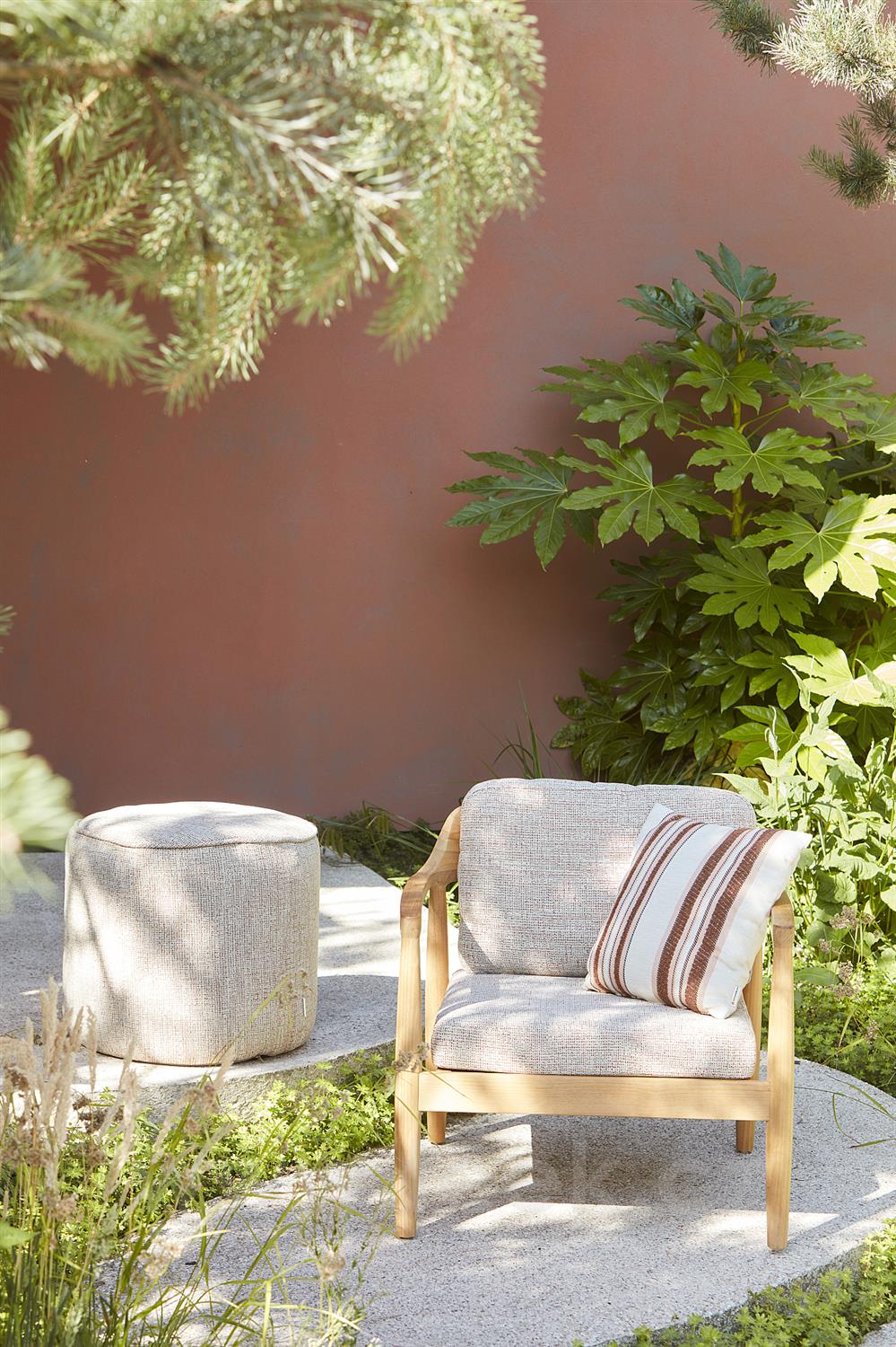 Sedák pro nízké křeslo Tofino Teak, Jati Kebon, venkovní látka Suntessa Marshall Bric Rust